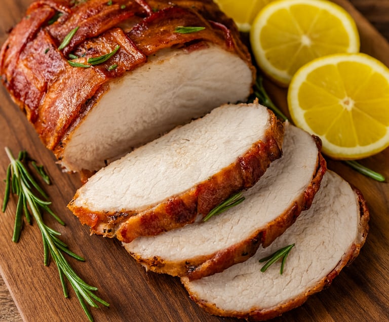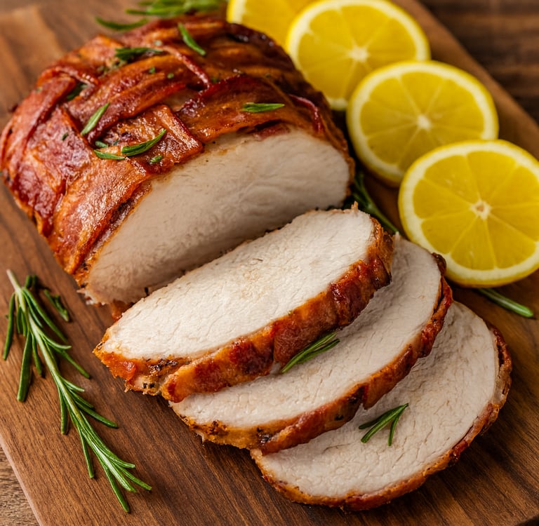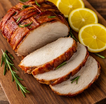 A juicy, flavorful dish that combines tender turkey and crispy bacon — perfect for family dinners or holidays.